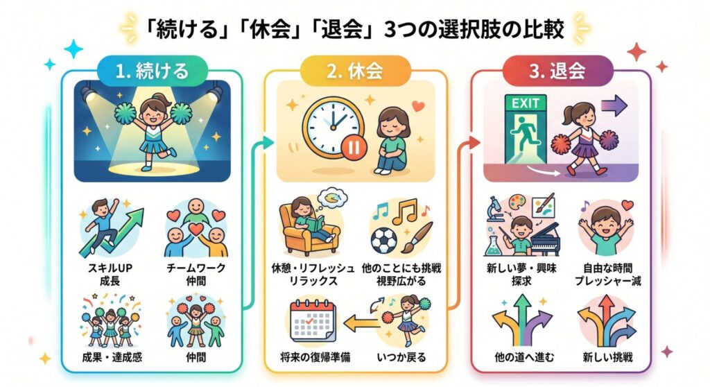 【子どもがチアダンスを辞めたい】本音の見極め方と「続ける・休会・退会」親の判断マニュアル