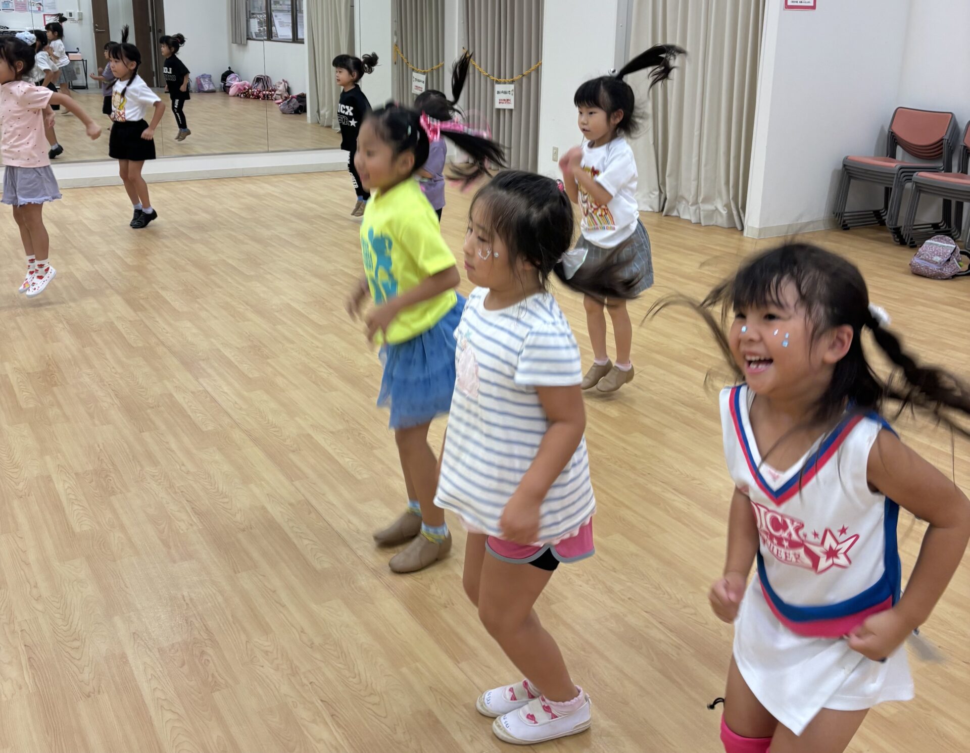 お友達と高め合い、ダンスやテクニックの上 達しやすい環境です。 基礎から丁寧に行うため、チアダンス初心者のお友達でも安心です 。